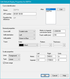 OK to return to the Properties: Log Definitions tab. - Click Close to return to the main synthetic display. The changes you made are applied to future synthetics providing a different setting doesn't exist in the import defaults file for that synthetic.