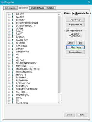 - From the Edit menu, select Default log properties > Log Libraryto open the Properties: Log Library dialog box.