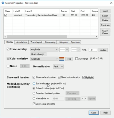 4. In the main Seismic Properties dialog box, click Close to return to the main synthetic view with the changes applied.