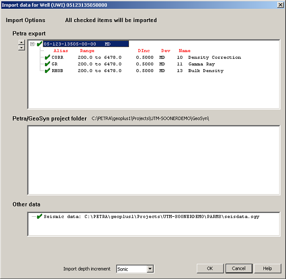 Any data that PetraSeis includes that can be used in GeoSyn appears in this dialog.