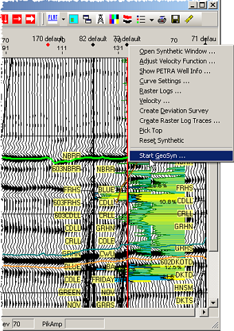 1. Using the PetraSeis application, right-click the well for which to launch GeoSyn and select Start GeoSyn.