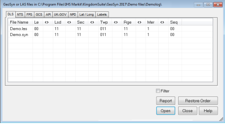 UWIs are listed in the appropriate survey system tab separated into columns representing each coordinate group of the survey system. Log files with missing or invalid UWIs are only listed in the Labels tab