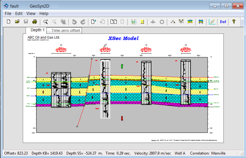The default view displays a single model with tabs that allow you to switch between depth and time. In version 2017 and later, both time and depth models can be displayed simultaneously in separate windows.