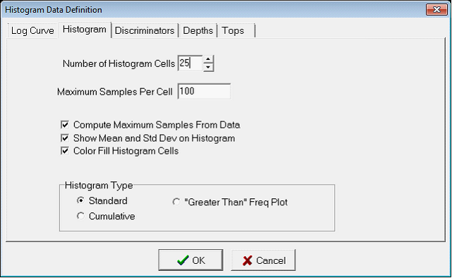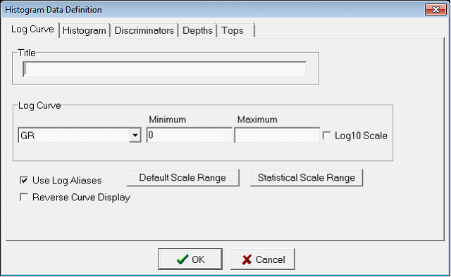 button on the top toolbar. This opens the Log Curve tab on the Histogram Data Definition window.