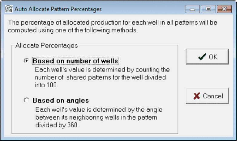 Auto Allocate Production - This tool computes the allocation percentage for wells in multiple patterns. This tool will compute the percentages between all patterns in the project.