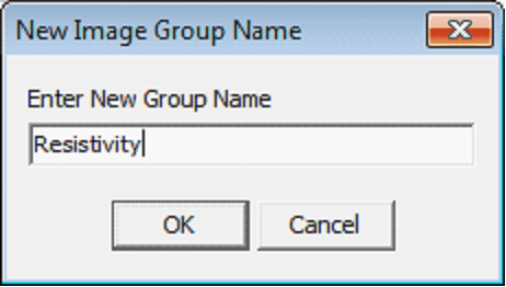 Group NamesAll raster images are assigned group names. A group name usually describes the log type (like Resistivity) and/or scaling (1, 2, or 5) of a log image. Select the appropriate image group from the "Image Group Name" drop-down list. To add a new group, click the + button next to the group names dropdown box (highlighted in red in the example below) or to Group>Add or Delete Groups... on the menu bar. Since the raster image is a resistivity log, add a Resistivity group.