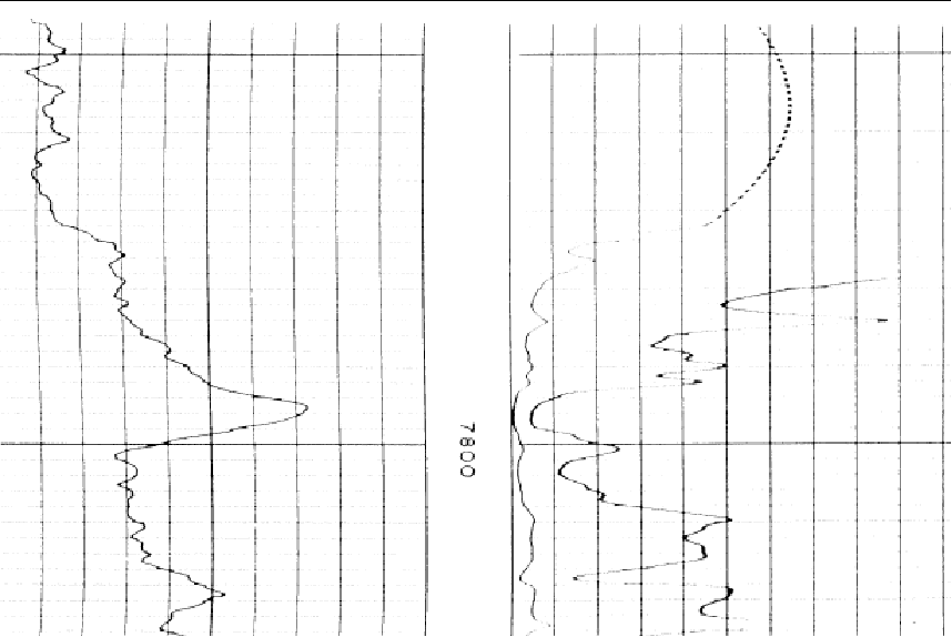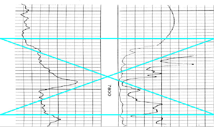 The Log Calibration tool includes a few additional tools for editing the raw log image files. This process modifies your image file, so be sure not to save over the original image file and have a backup. To restore the filtered lines select File>Reload Original Image. This can be useful for cleaning up images for digitizing raster logs. Since the tracing algorithm looks for adjacent dark pixels, it can easily get confused by vertical scale lines and horizontal depth lines. The Log Calibration tool can filter out straight horizontal and vertical lines that can confuse the auto-digitzing function. Log imaging editing isn't foolproof - using filters can reduce the clarity of the curves as well, especially where the curves intersect the filtered horizontal or vertical lines. Rotate ImageScanning can sometimes subtly rotate image logs. The easiest way to spot this is tilted depth/scale lines or by zooming out. Note that this can increase the margins to the left or right the actual image. It's often useful to use the "Crop at Edges" can remove extra white space created by rotating the image. To use this tool, select the