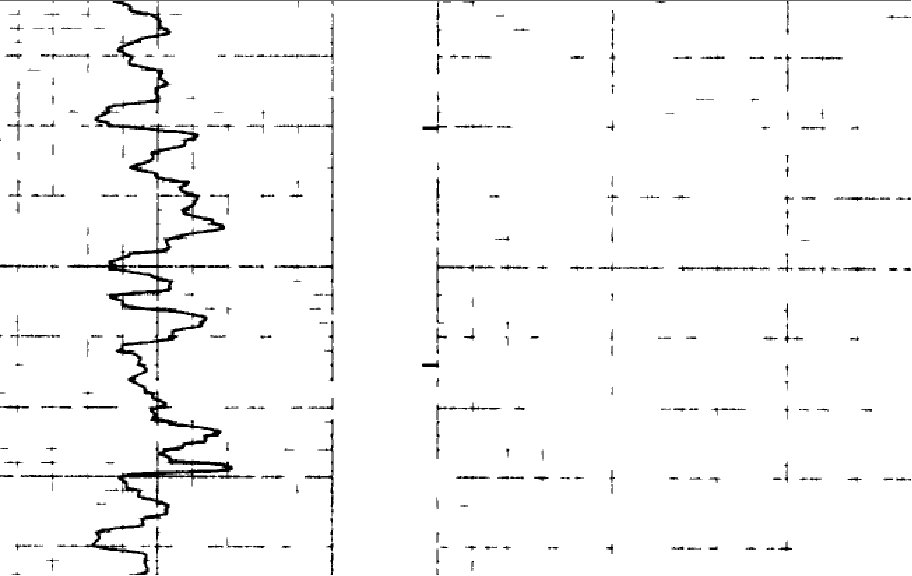 The original image (left) and after using the "De-Speckle Image" tool (right) Color to MonochromeSome raster images are saved as color files, even though they are scanned copies of black and white paper logs. This tool will convert color images to monochrome, which can decrease file size. To use this tool, select Edit>Color To Monochrome on the menu bar at the top of the Raster Image Calibration tool. Convert Image Bits per Pixel"Color depth" indicates the number of bits that describe a single pixel's color in an image file. This is usually expressed in bits per pixel: 1 (monochrome), 8 (8-bit color) , 16 (high color), or 24 (true color) bits per pixel. Higher color depths represent finer color gradation, but take up more file space. Generally, raster images don't need high color depth to represent lithology. Note that this tool will only work on images with color depths above 1. To use this tool, select Edit>Convert Image Bits per Pixel on the menu bar at the top of the Raster Image Calibration tool.