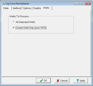 Current Well Only - This option will normalize the curves only on the single well highlighted in the Main Module.