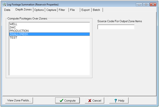 Source Code for Output Zone Items This adds a source code to newly created reservoir data items. Changing the Source Code when repeating a log footage summation will create an entirely new set of data items with the new source code.