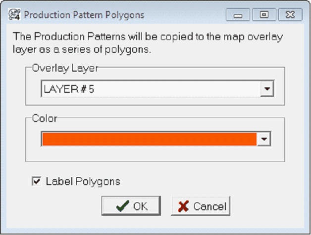 or Create Pattern Polygons - This function uses the wells in the patterns to construct and store closed polygons in the map overlay facility. These polygons can then be used for volumetrics.