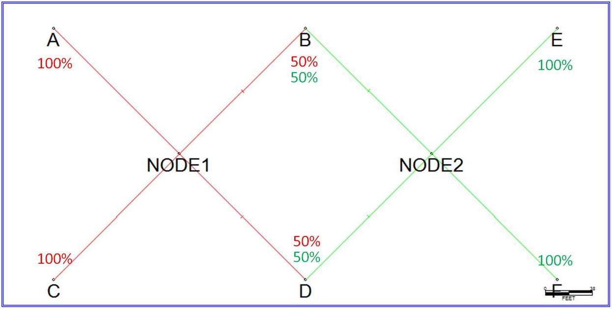 Petra sets the percentages for each well by the number of shared patterns. If a well is common to two patterns, the well's allocation percentage is 50% for each of the two patterns.