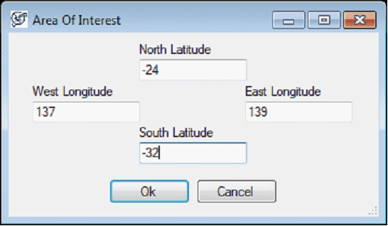 Updates wells and adds new wells inside a rectangular “Area Of Interest.”  As such, this option is probably the most useful for new, blank projects or for expanding an existing project.  To use this option, select the “Area of Interest” button and enter the latitude and longitude boundaries of the area of interest (using the WGS84 datum).