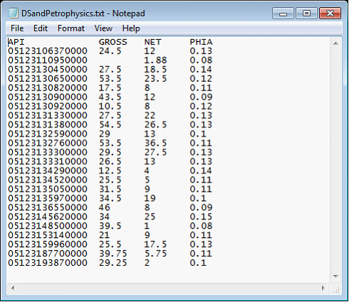 Field DefinitionsSelect the appropriate file format on the File Format dropdown. Recall that this tool can either use tabular (fixed column) or comma/tilde-delimited type ASCII data file. Columnar files separate different data entries with empty space. Comma- and tilde-delimited files, on the other hand, separate different data entries with characters. Petra distinguishes between different entries on a row with specific start and stop column numbers.