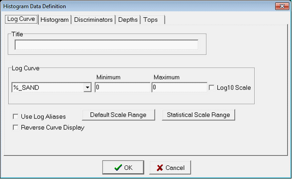 button on the top toolbar. This opens the Log Curve tab on the Histogram Data Definition window.