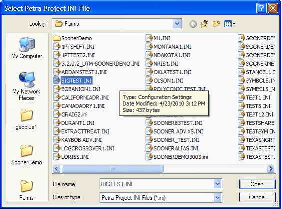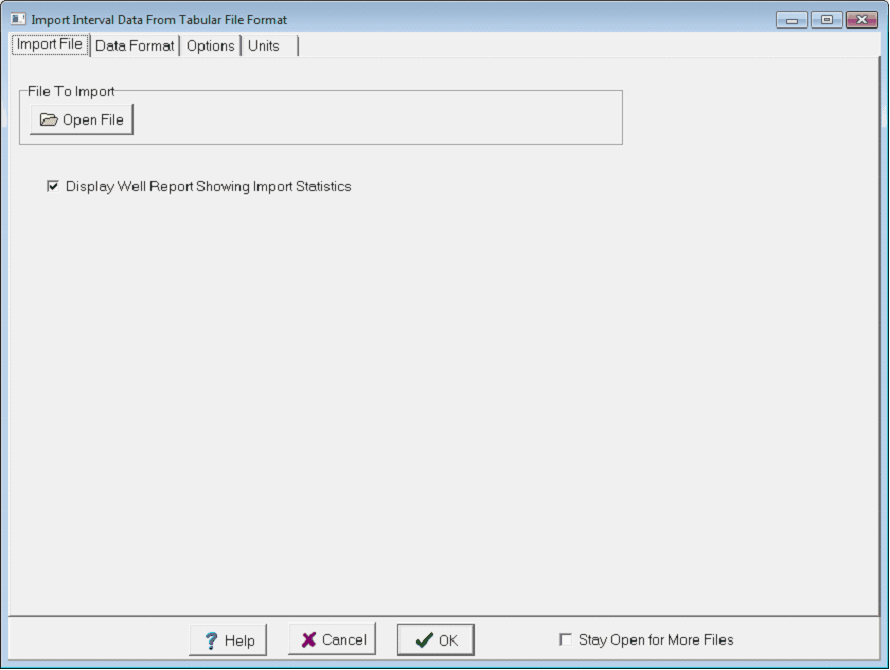 To save the changes to the database, select OK. Here, Petra gives the option to save or discard ALL changes made to the selected wells interval table. All the edits to all intervals will be ignored if you select CANCEL. Importing tabular Interval Data Digital data where each row contains information about a discrete interval can be easily imported into Petra. Before attempting to import interval data, check to see if the data has a column dedicated to the UWI/API. Since Petra assigns interval data to specific wells by comparing UW/API numbers, interval data without an identifying API/UWI column cant be imported. The easiest way to remedy this is to simply open the interval data in a spreadsheet program, and add a new column for well UWI/API. To import new digital interval data, select Project>Import>Import tabular Interval Data on the menu bar at the top of the Main Module. This opens the Import Interval Data from tabular File Format box. Here, select the Open File button and navigate to the interval datas location.