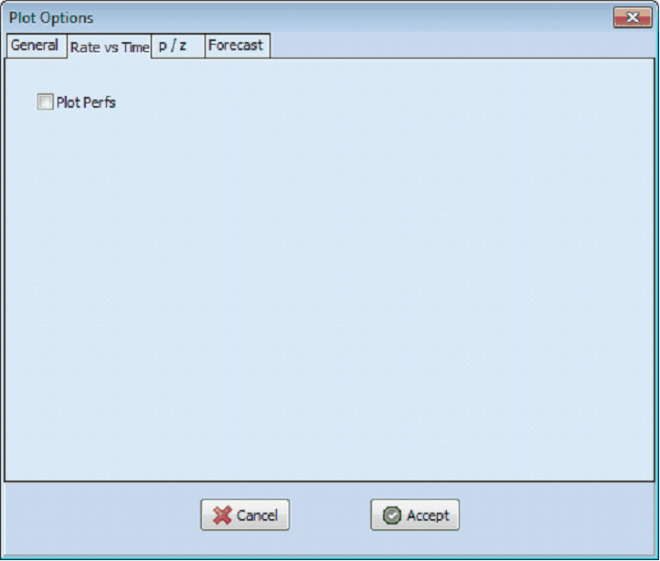 Plot Perfs - This option plots perfs along the bottom horizontal axis of the plot. Note that this option is also available on the toolbar at the top of the Decline Curve Analysis Tool. p/z tab