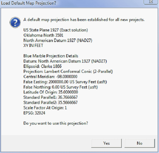 When new projects are created, Petra will ask the user if they want to use the default map projection.