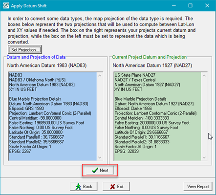 1. A dialog for comparing the current datum and projection will open with the selected Datum only. Click Set New Projection button.