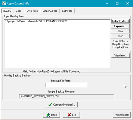 1. Click Convert Overlay(s).. to reproject the selected overlay files.