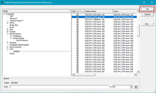 3. The Blue Marble Apply Datum Shift dialog opens. Select your new projection from the available list and Click OK.