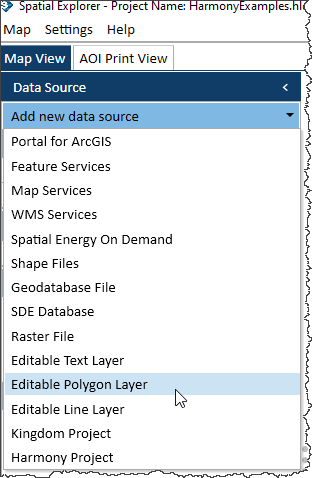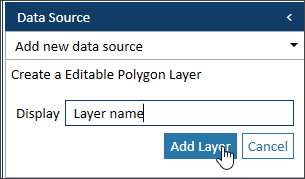 - Create a new editable polygon layer by clicking Add new data source and then selecting Editable Polygon Layer.
